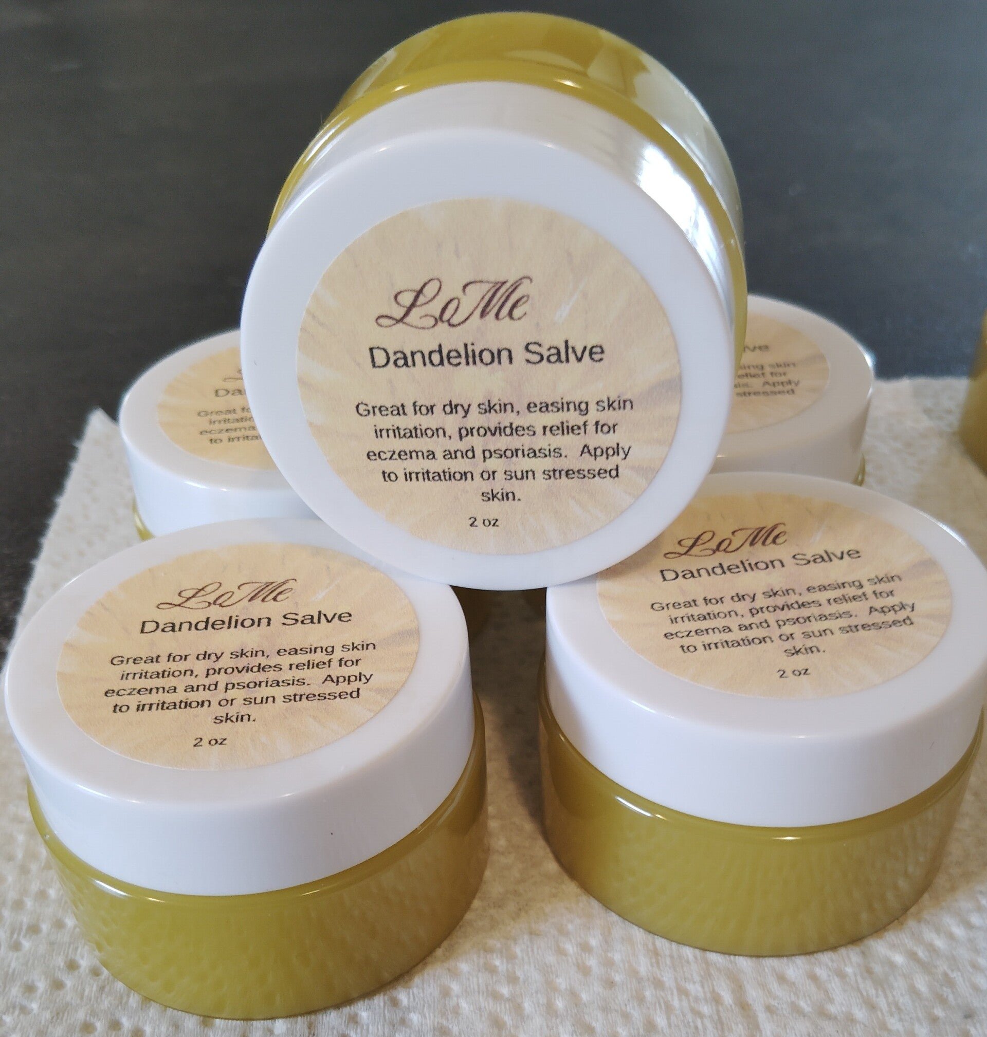Dandelion salve is used to soothe sore muscles and aching joints. It is highly effective at moisturizing dry, cracked skin and rough cuticles, and at helping to heal minor wounds, rashes, and eczema.